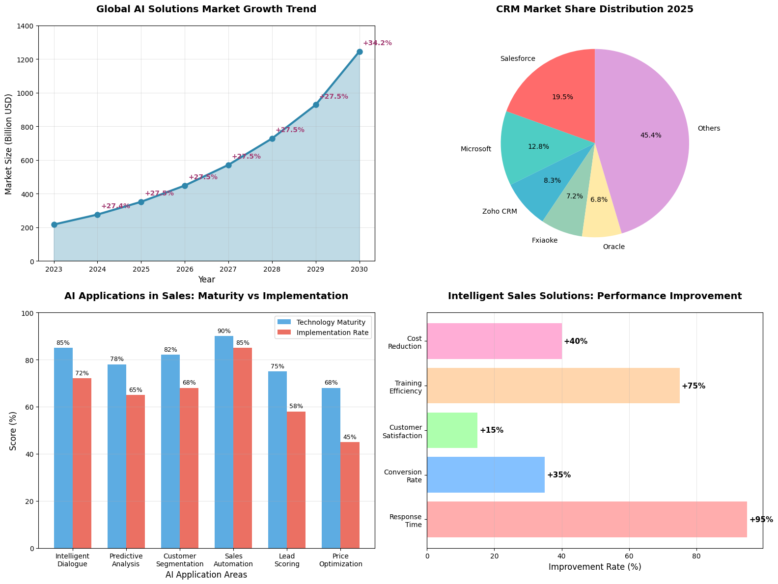 在数字化浪潮席卷全球的今天,一个令人震撼的数据正在改写商业版图:根据QYR恒州博智的最新研究,2023年全球AI解决方案市场销售额已达216.1亿美元,预计到2030年将激增至1245.2亿美元,年复合增长率高达27.9%。这一惊人增长背后,智能销售解决方案正成为企业数字化转型的核心引擎。然而,面对市场上琳琅满目的产品选择和技术路线,企业决策者往往陷入选型困境:如何在纷繁复杂的解决方案中找到真正适合自身业务的智能销售系统?本文将为您提供一份权威、全面的智能销售解决方案深度指南,从市场趋势到技术原理,从产品对比到实施策略,助您在AI销售时代抢占先机。