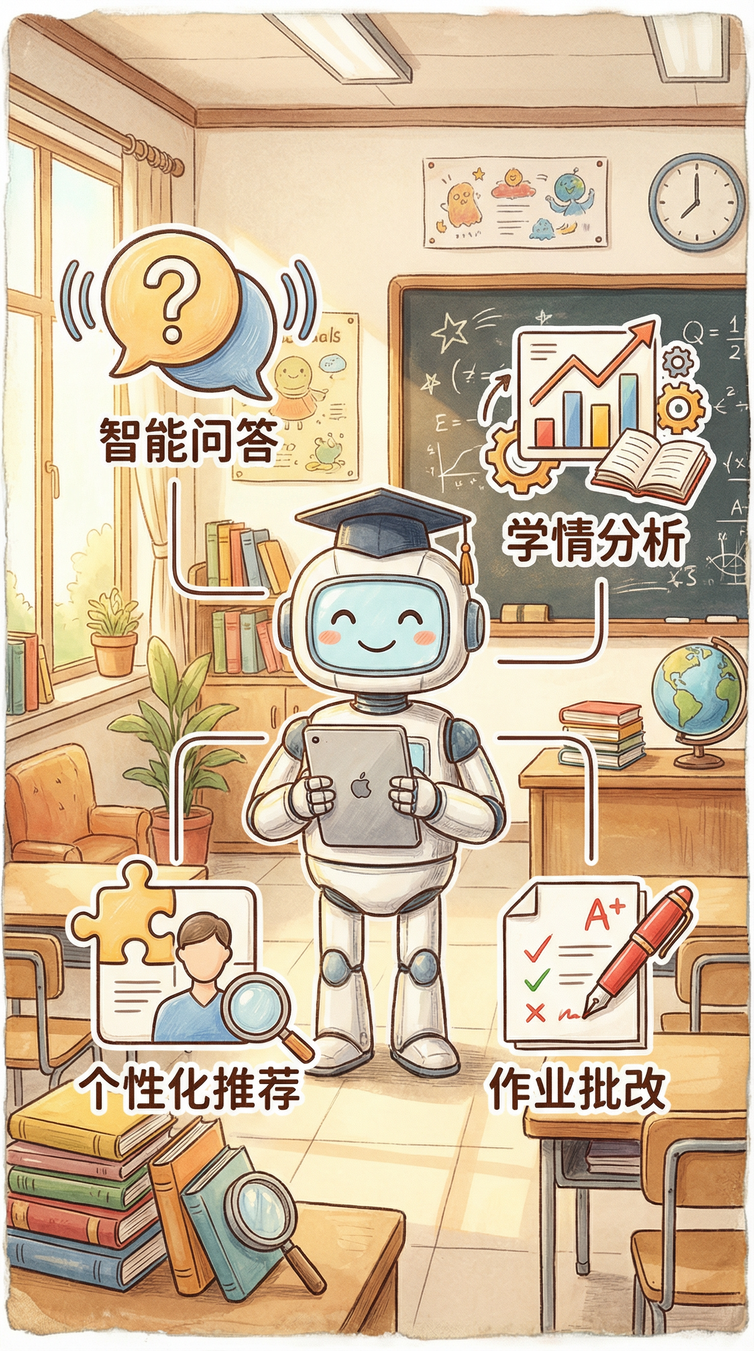 | 基础教育 | 智能答疑、作业批改 | 多模态理解、知识图谱 | 高度个性化 | 过程性评估 |