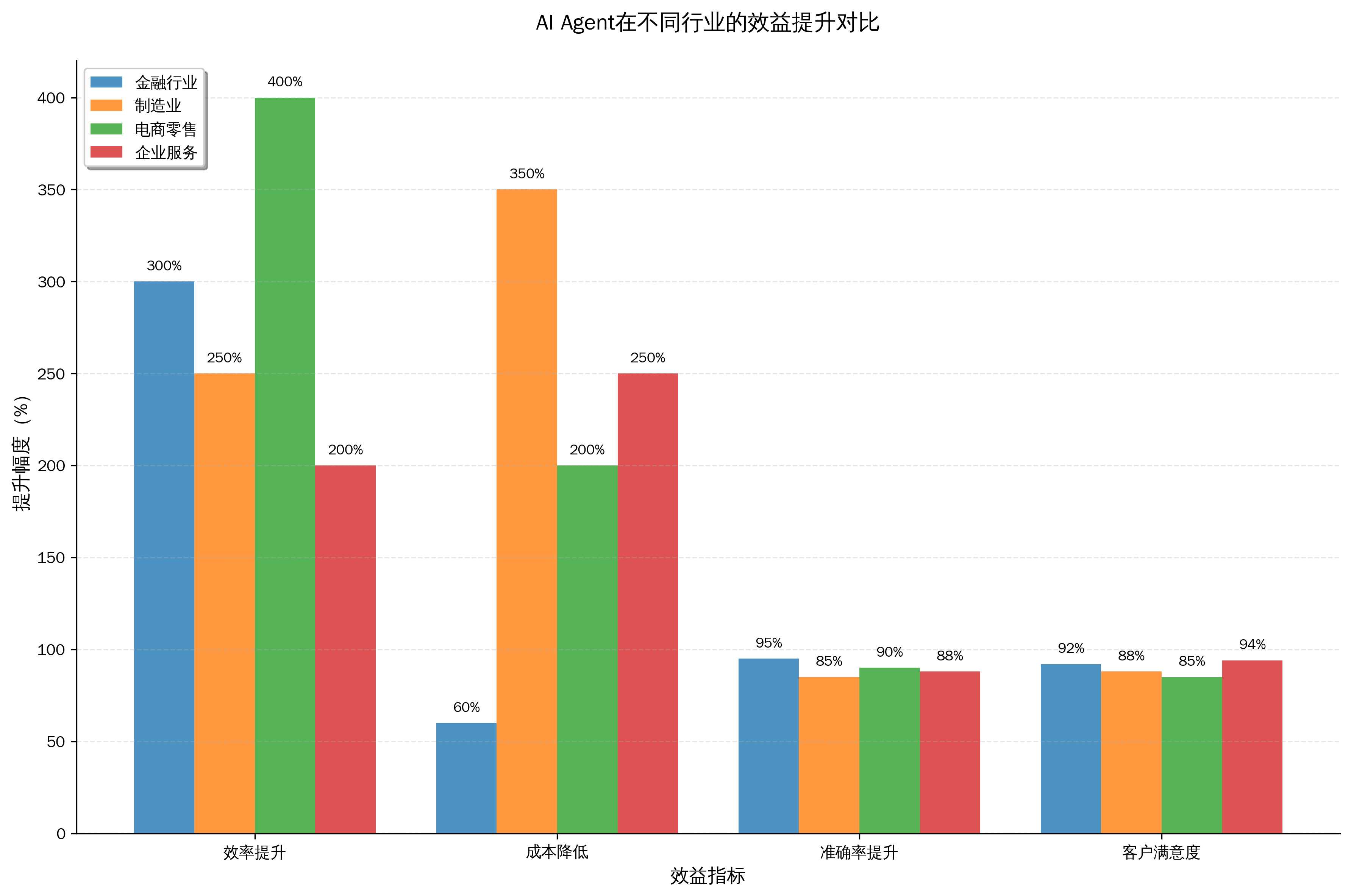 图3:AI Agent在不同行业的效益提升对比