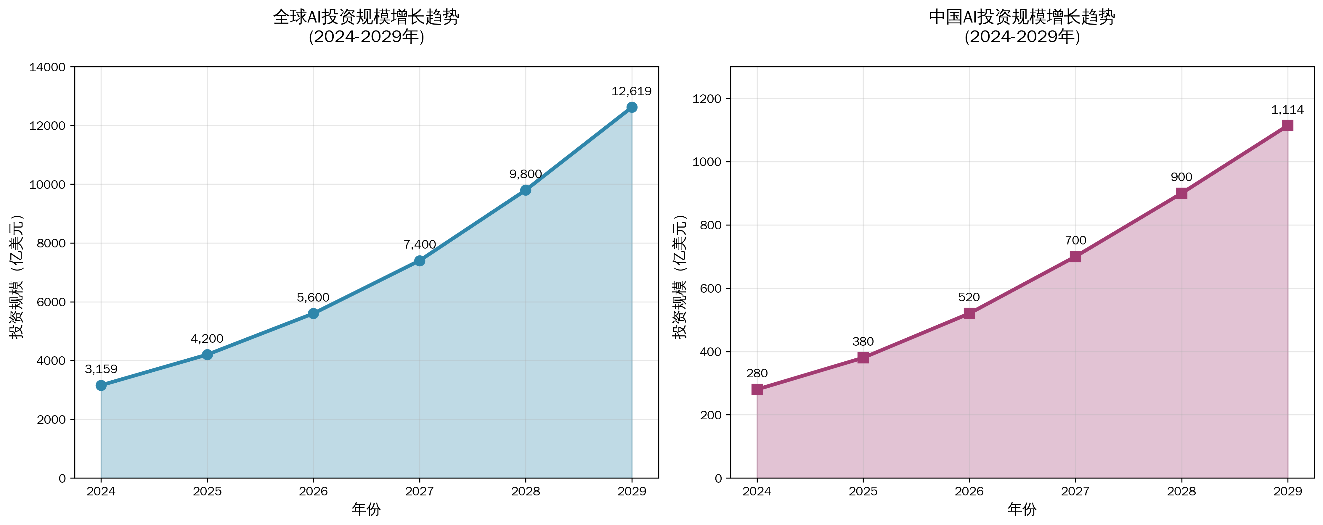 从上图可以清晰看出,无论是全球还是中国市场,AI投资都呈现出强劲的增长态势。这种增长不仅反映了市场对AI技术价值的认可,更预示着智能体经济时代的全面到来。