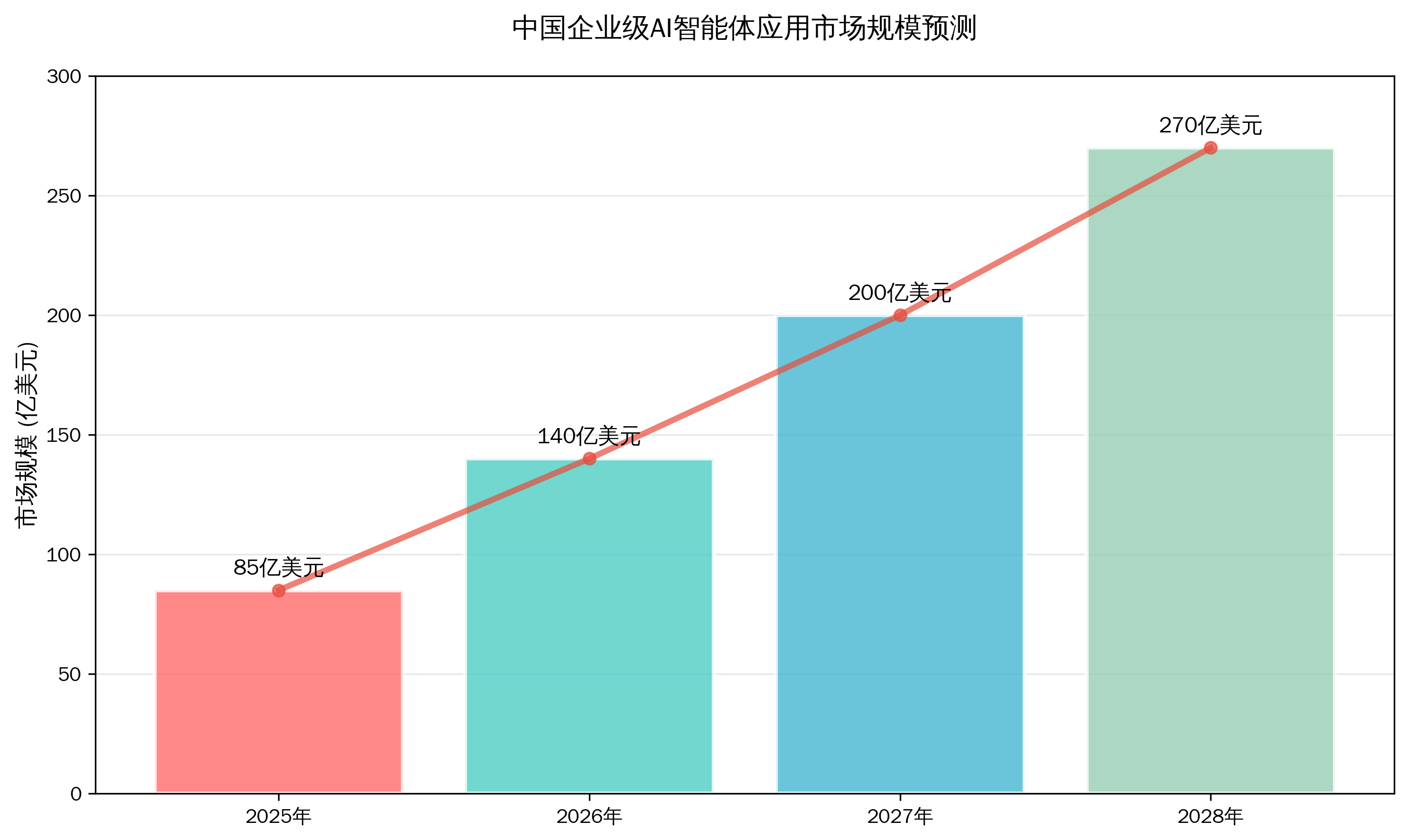 IDC预测,中国企业级Agent应用市场规模在2028年将达到270+亿美元,年复合增长率超过40%。这一增长主要由以下趋势驱动: