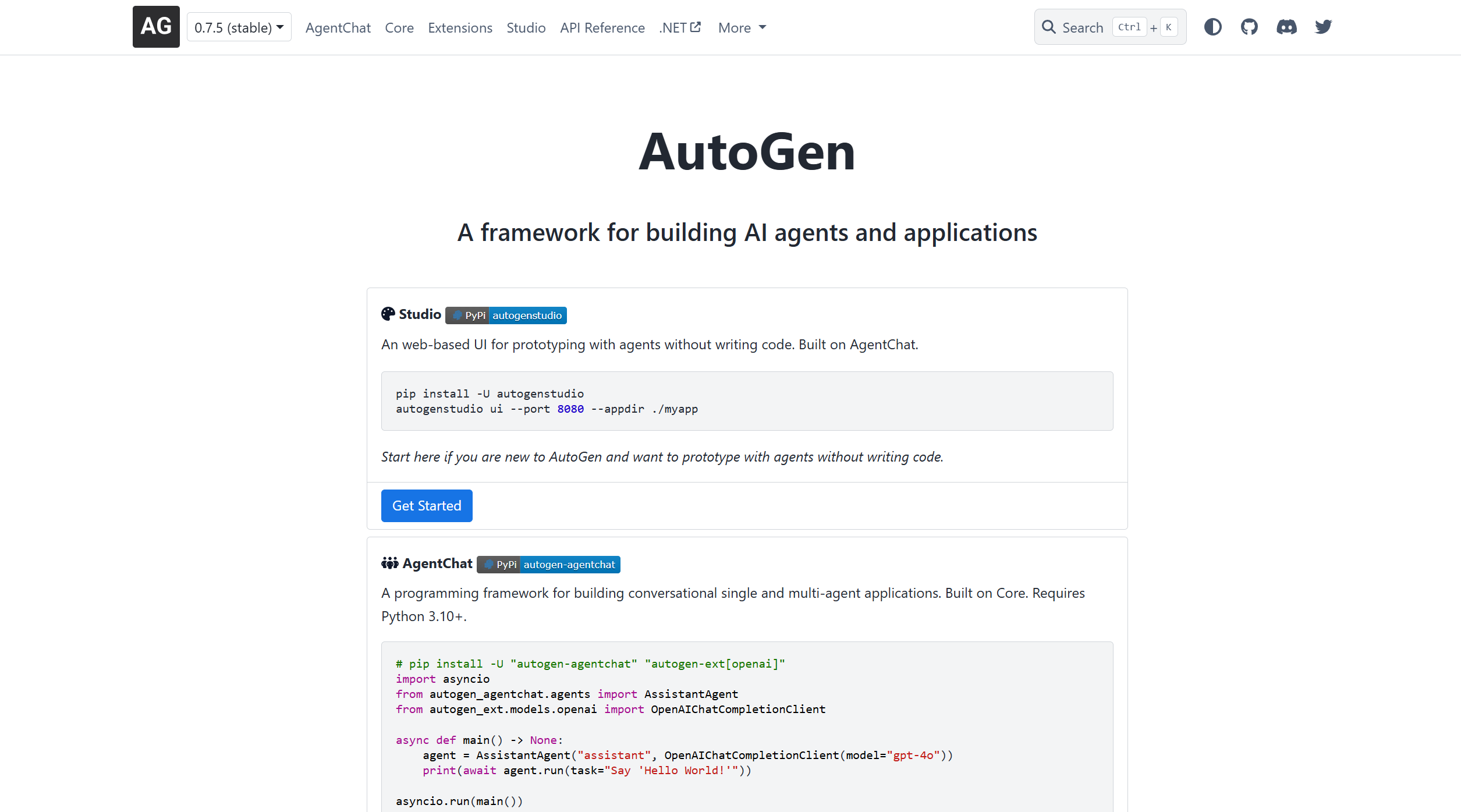 Microsoft开源的AutoGen在多代理协作方面具有先发优势,其独特的"对话式编程"模式让多个AI Agent能够像人类团队一样协作完成复杂任务。