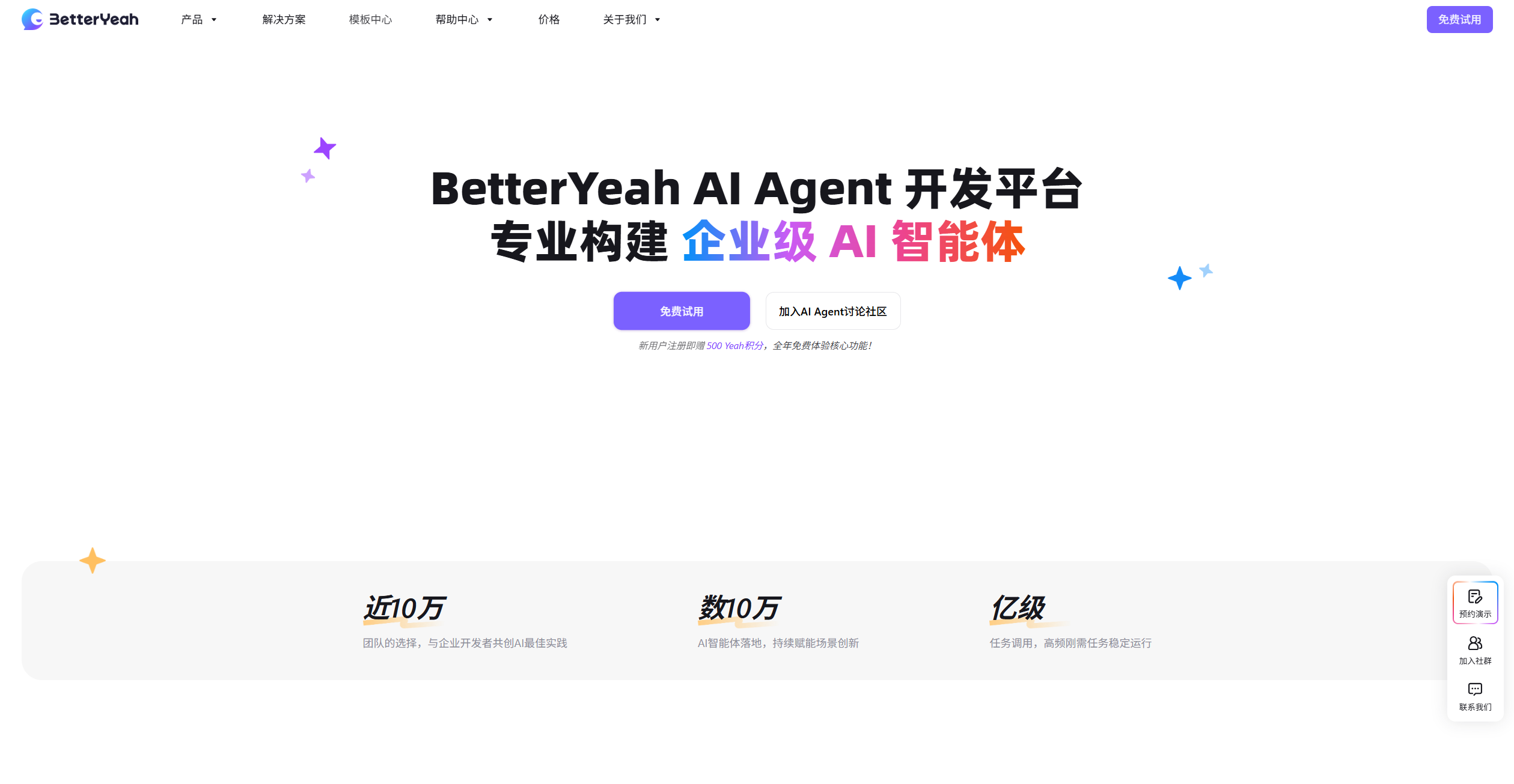 BetterYeah AI作为国内领先的企业级AI智能体开发平台,专注于帮助企业快速构建生产级Agent应用。平台通过自研的NeuroFlow开发框架,提供从应用开发到运维管理的全链路解决方案