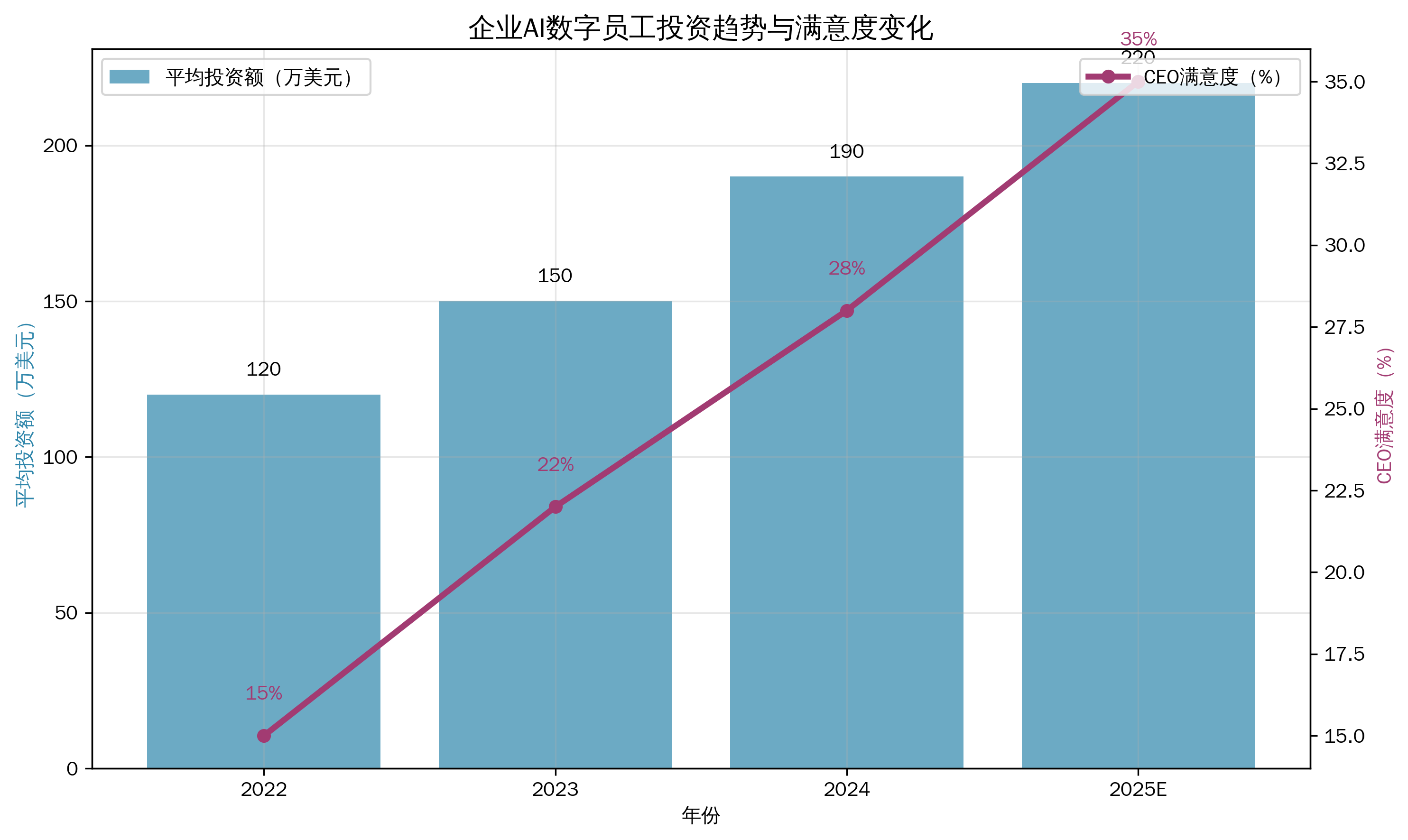 图1:企业AI数字员工投资趋势与CEO满意度变化。
