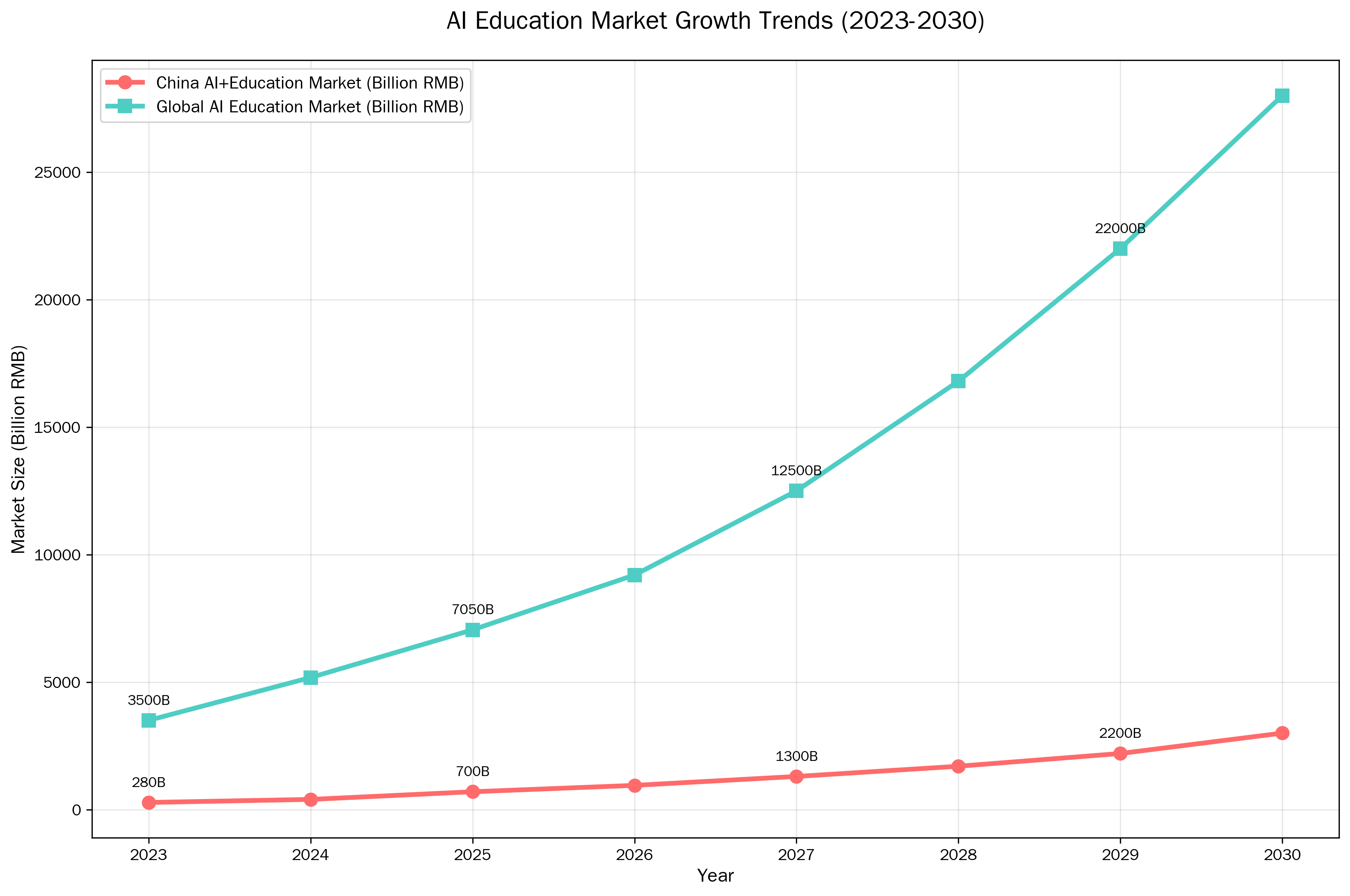 中国与全球AI教育市场规模增长对比(2023-2030年)