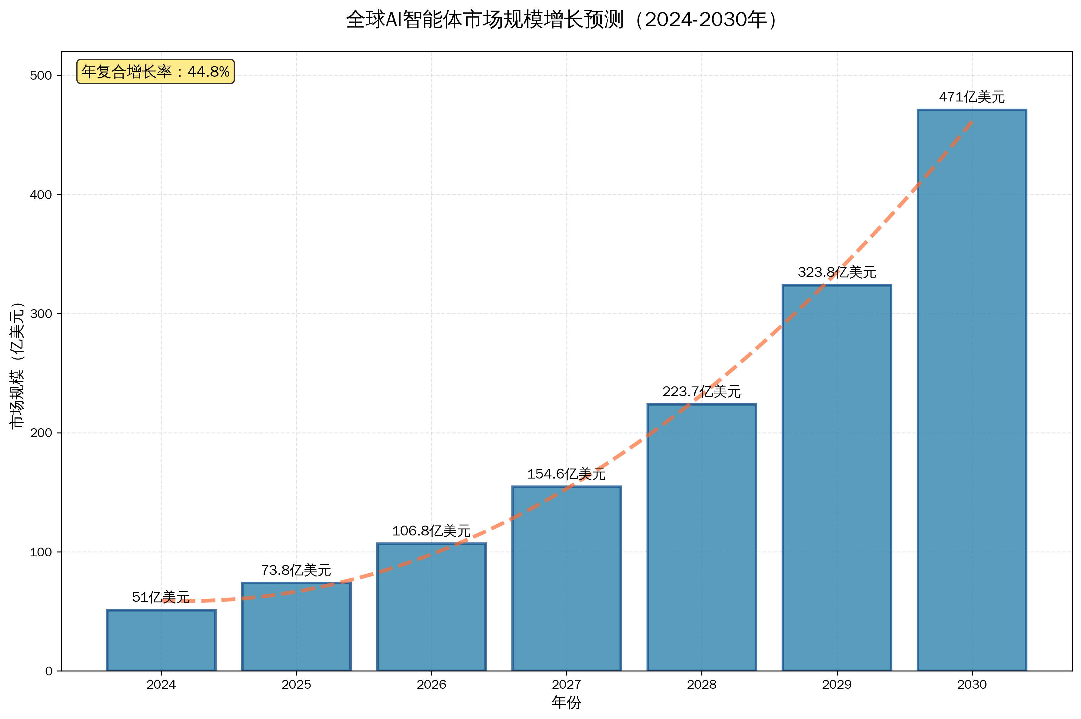 图:全球AI智能体市场规模增长预测(2024-2030年)