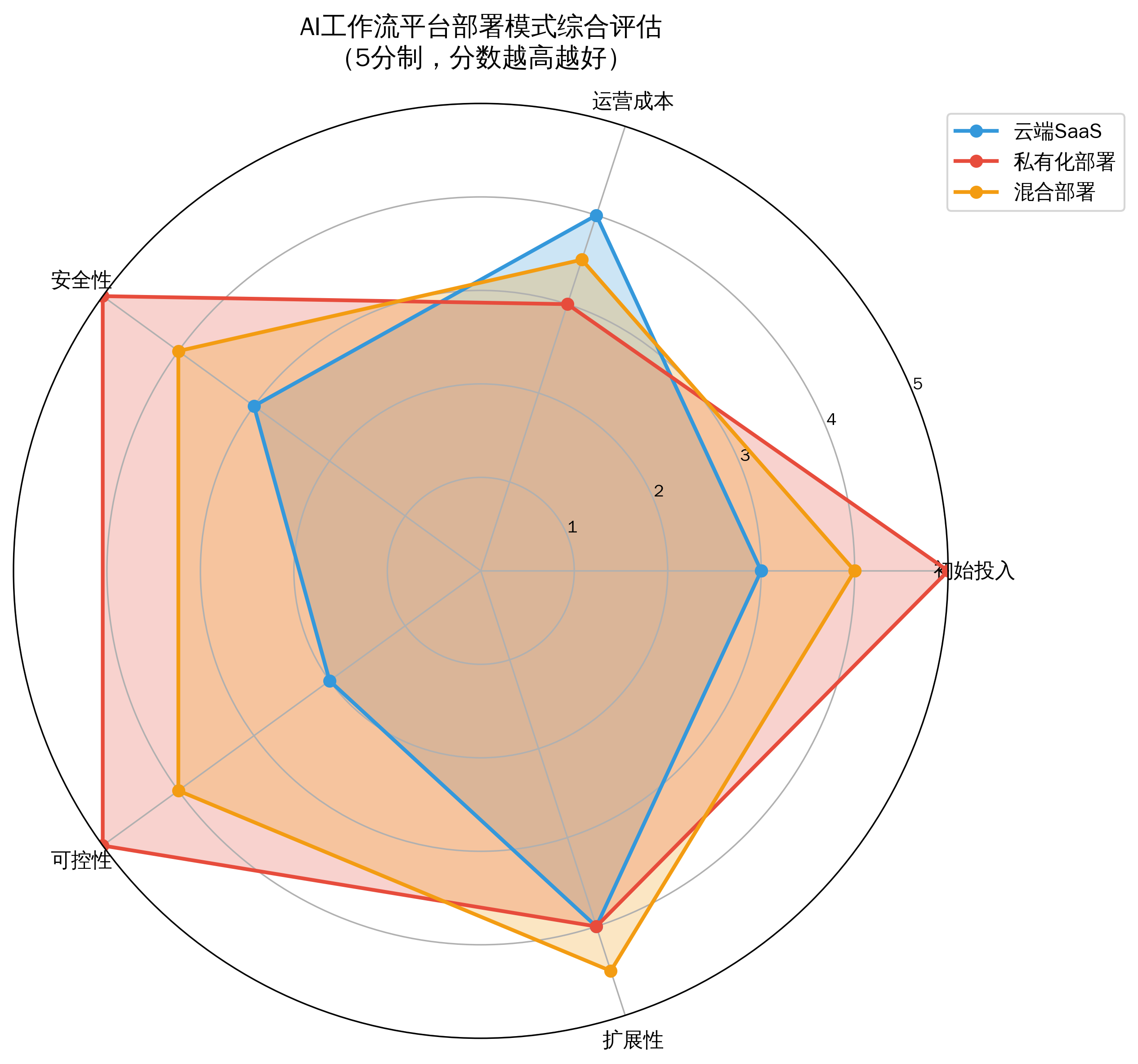 不同的部署模式在成本、安全性、可控性方面存在显著差异: