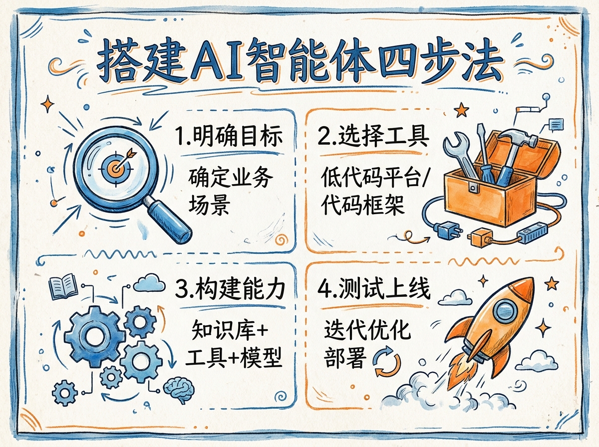 "我们公司也想用AI,但不知道从哪里下手。"这句话,几乎是当下每一位企业管理者在面对AI浪潮时的内心独白。你可能已经体验过ChatGPT的对话能力,也见过各种"AI助手"的演示,但那些停留在聊天框里的问答,和真正能接管工作流程、自主完成任务的智能体(AI Agent),根本不是一回事。搭建一个智能体,意味着你要把AI从一个"会说话的工具",升级为一个"会干活的数字员工"。这个过程并不神秘,但也绝非随便套用一个模型就能完成。本文将从智能体的底层逻辑出发,系统梳理搭建前的准备、核心路径的选择、常见误区的规避,以及企业级落地的完整思路,帮你在最短的时间内建立起一套真正可运行的智能体系统。