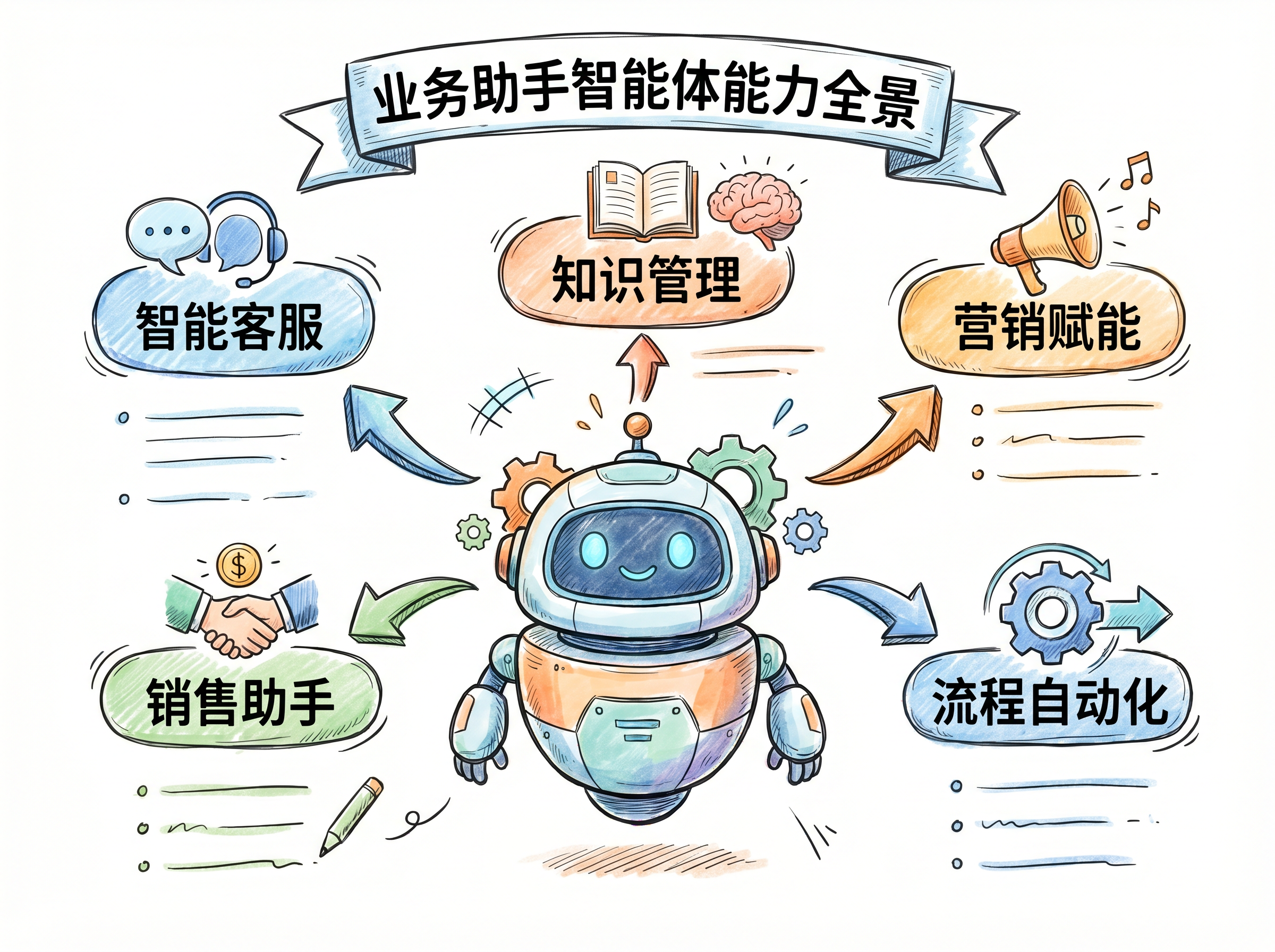 理解了业务助手智能体的本质,我们就能更清晰地看到它为何能在企业场景中产生如此显著的效果。接下来,让我们深入拆解它的核心能力构成。