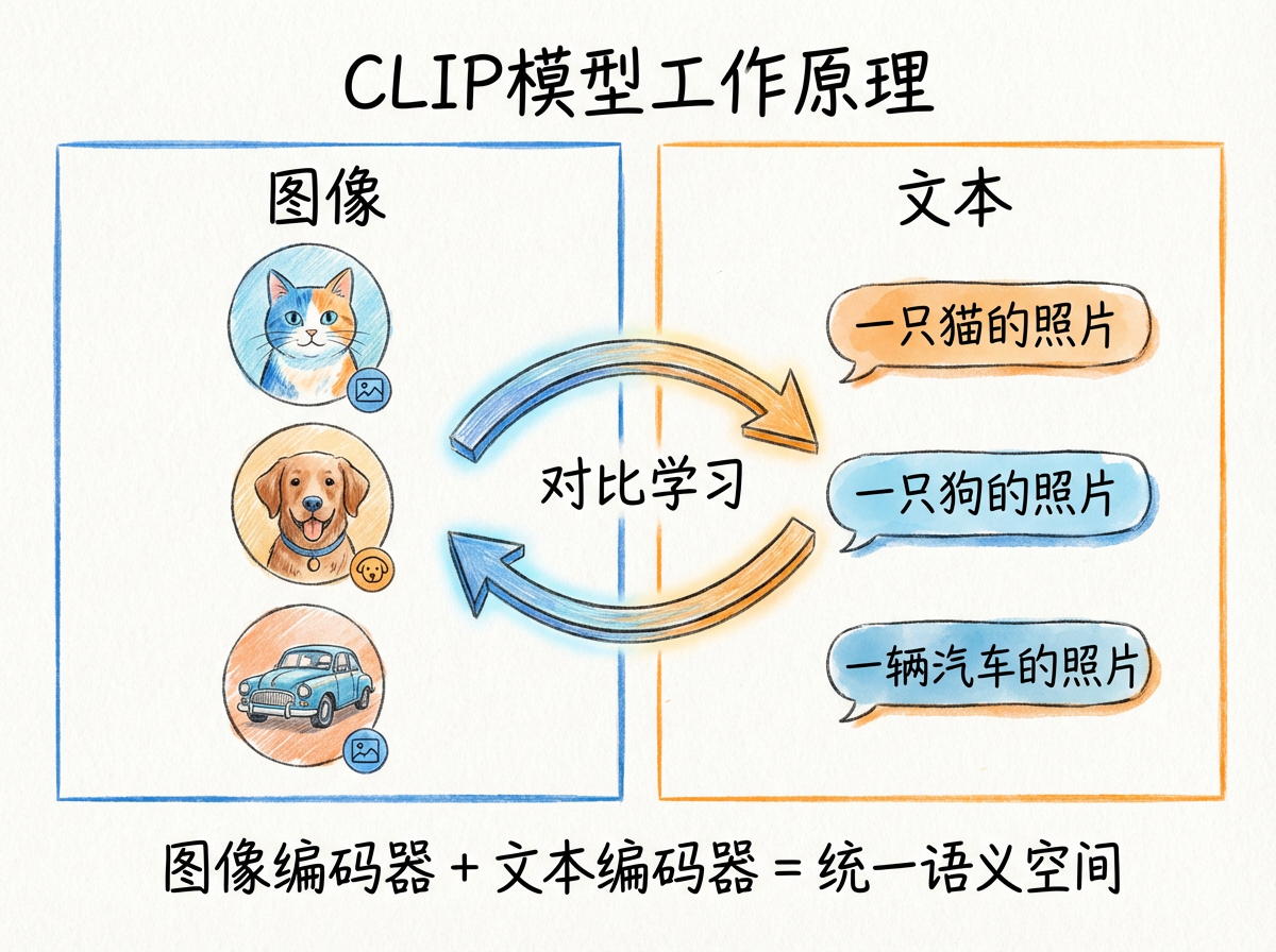 你有没有想过,为什么现在的AI不仅能"看懂"图片,还能用自然语言描述它看到的内容,甚至能根据一段文字描述找到最匹配的图片?这背后,有一个关键的技术突破:CLIP模型。2021年,OpenAI发布了这个名为CLIP(Contrastive Language-Image Pre-training,对比语言-图像预训练)的神经网络,彻底改变了计算机视觉领域的游戏规则。它不需要人工标注的训练数据,不需要针对特定任务反复微调,却能在数十个视觉任务上展现出惊人的泛化能力。如果你想真正理解多模态AI的底层逻辑,理解CLIP模型是什么、它如何工作、它能做什么,这篇文章将给你一个系统而清晰的答案。