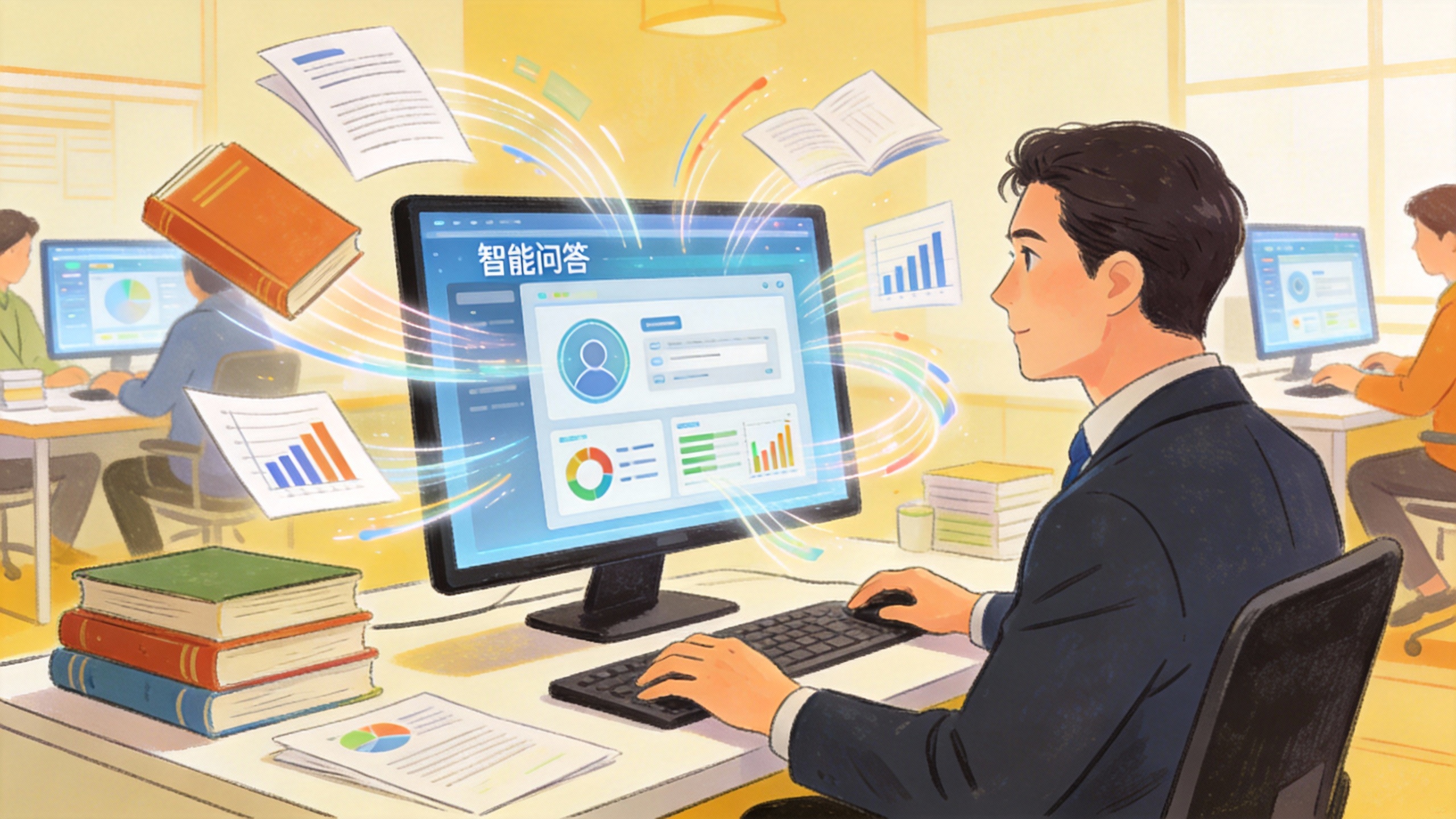 图:企业员工使用AI知识库系统的智能办公场景