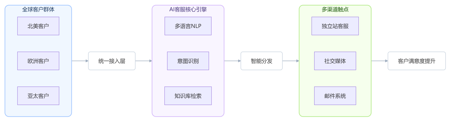 图:AI客服在跨境私域场景中的应用架构