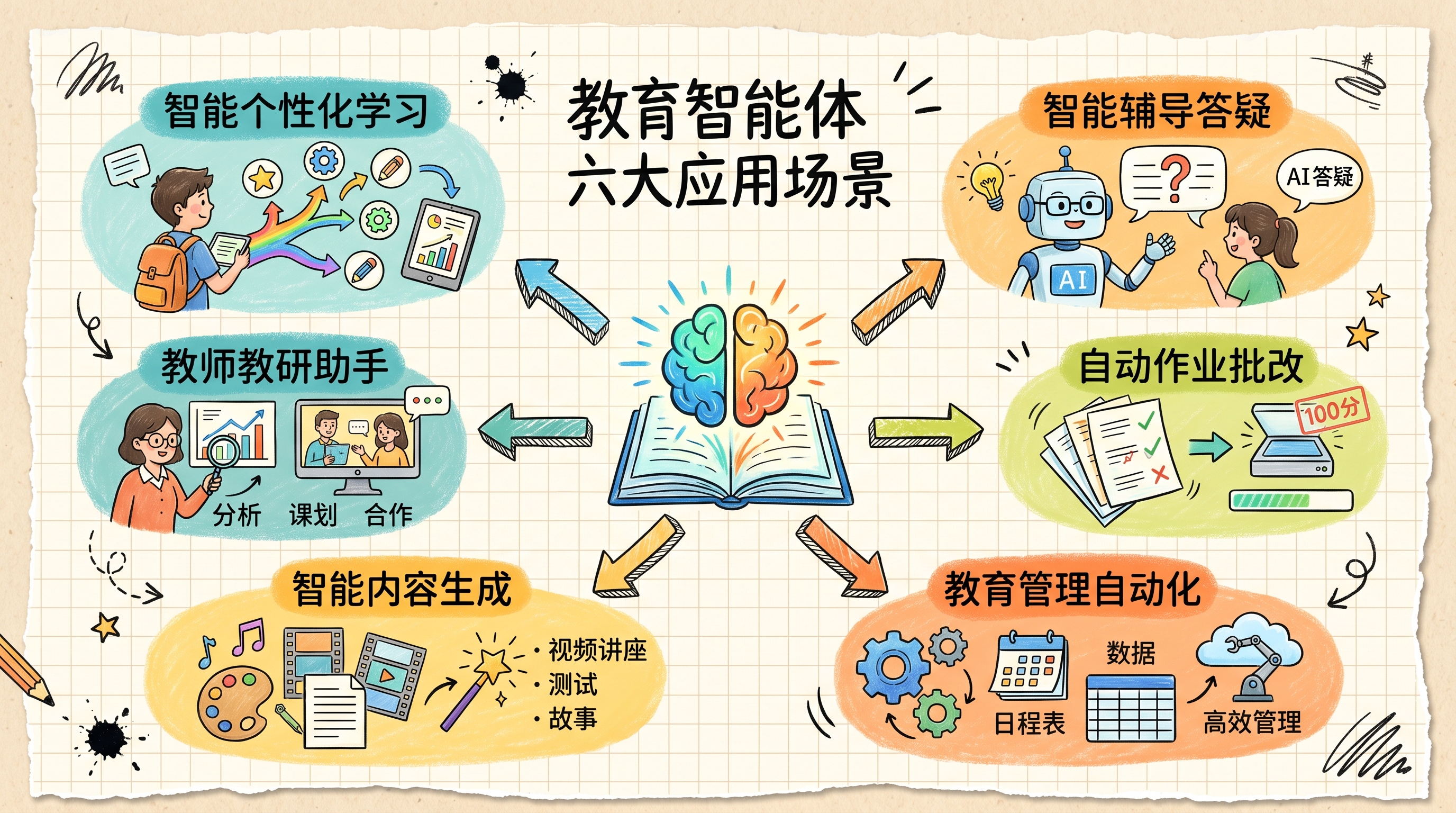 图:教育智能体六大应用场景全景图