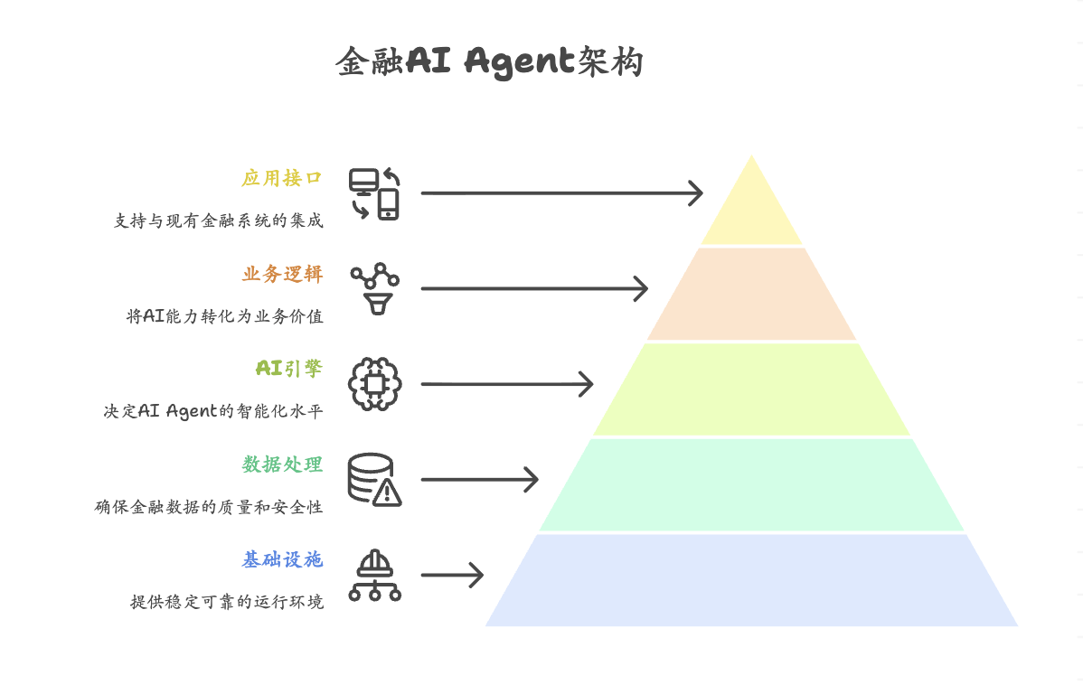 现代金融AI Agent的技术架构通常采用分层设计理念,从底层的数据处理到上层的业务应用,形成了一个完整的技术生态系统。