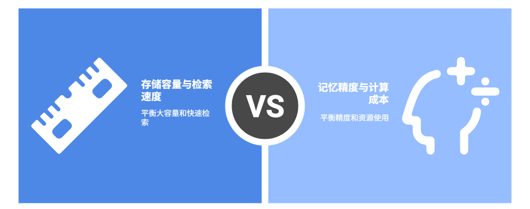 在实际应用中,记忆系统的性能优化需要在多个维度进行平衡。首先是存储容量与检索速度的权衡,大容量的记忆存储能够提供更丰富的上下文信息,但同时也会增加检索的复杂度。其次是记忆精度与计算成本的平衡,高精度的记忆表示需要更多的计算资源,但能够提供更准确的语义匹配。