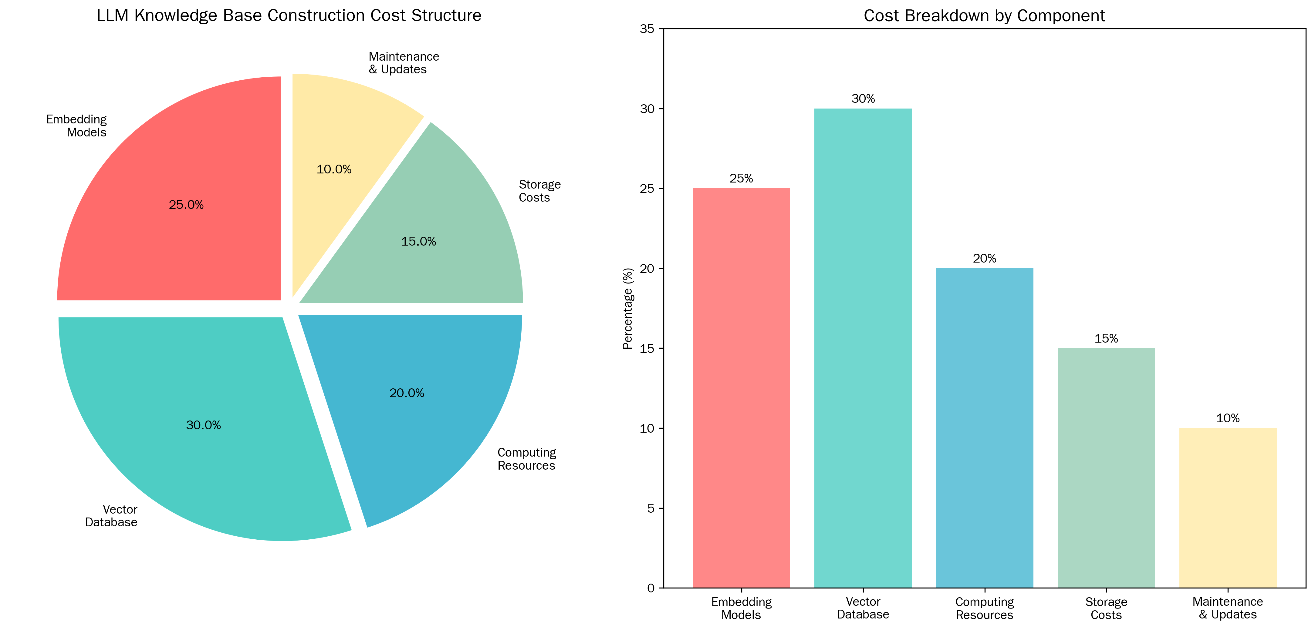 理解LLM知识库的成本构成是制定优化策略的前提。根据我们对数百个企业项目的成本分析,典型的知识库系统成本结构呈现出明显的规律性特征。
