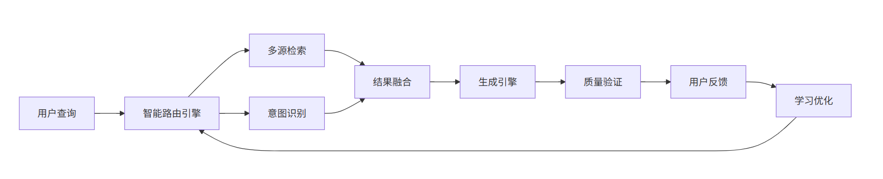 智能路由决策引擎是这一架构的核心组件,它能够基于查询意图自动选择最优检索策略,支持多数据源并行检索与结果融合,从而实现检索精度提升40%以上。这种智能化的路由机制彻底改变了传统的固定检索模式,让系统能够根据具体问题的特点动态调整检索策略。