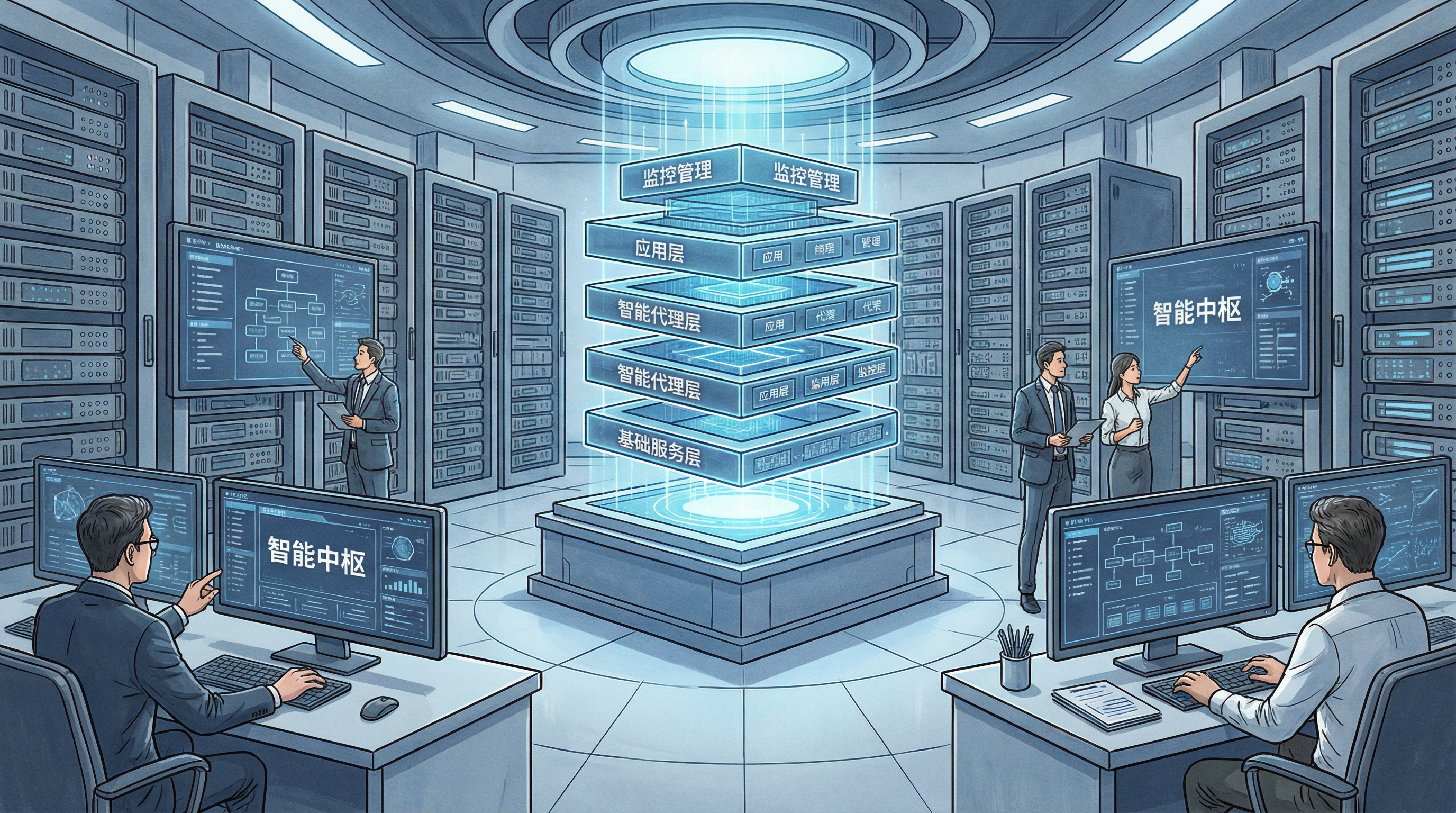 企业级Multi-Agent系统通常采用分层架构,包括基础设施层、平台服务层、Agent管理层和应用接口层。
