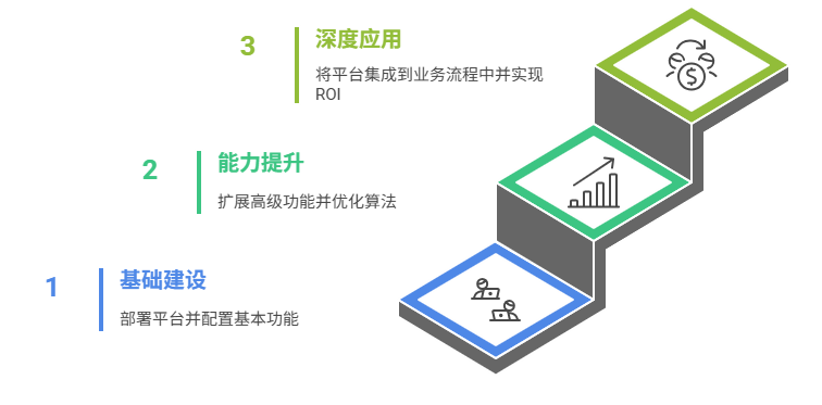 第一阶段是"基础建设期",重点是完成平台部署、数据接入、基础功能配置等工作。这个阶段的关键是确保系统稳定运行,建立基本的数据治理规范,完成核心用户的培训和试点应用。