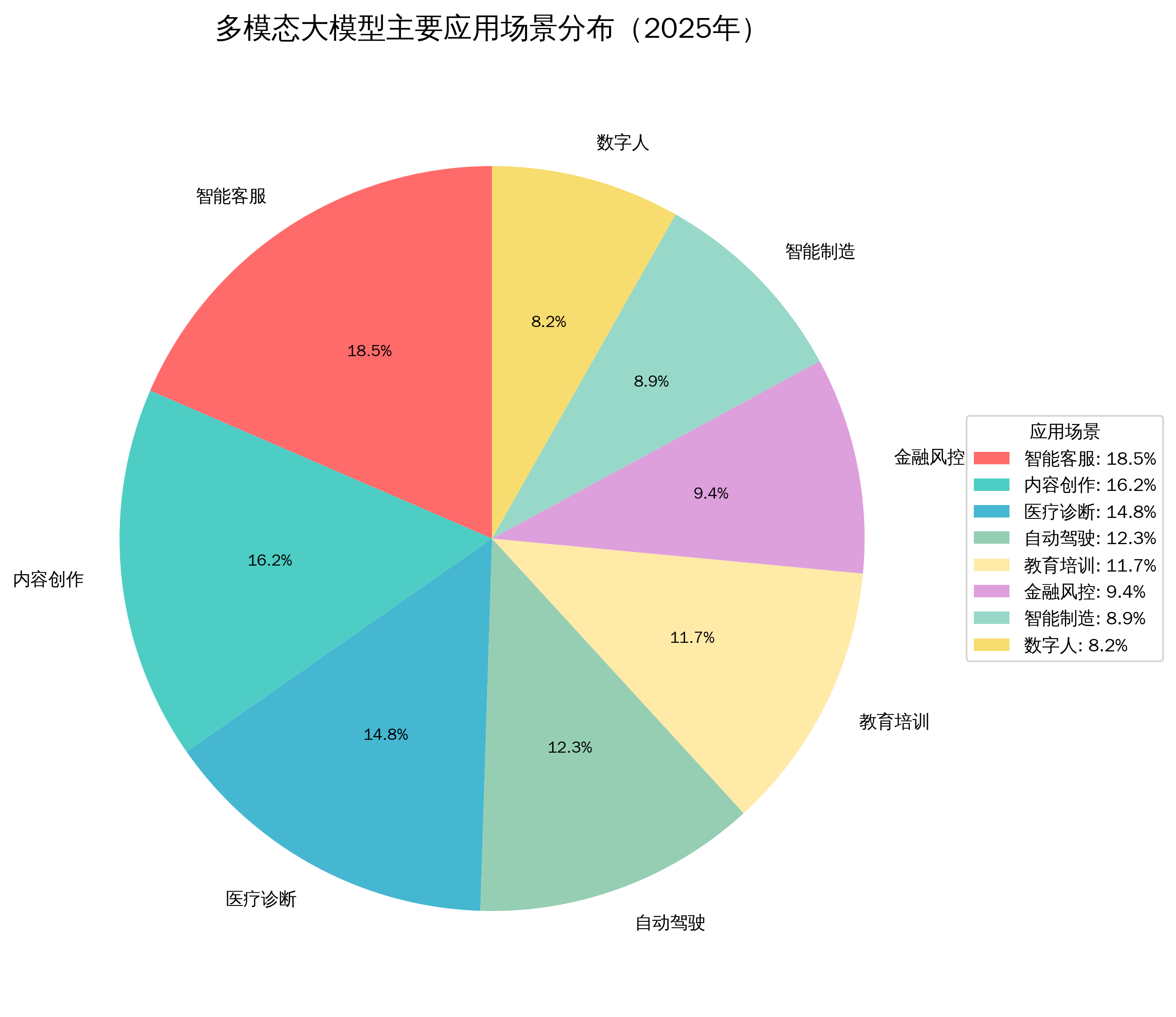多模态大模型的应用场景极其广泛,几乎涵盖了所有需要处理多种数据类型的业务领域。从当前的应用实践来看,智能客服、内容创作、医疗诊断、自动驾驶、教育培训等领域是多模态大模型应用最为活跃的场景。