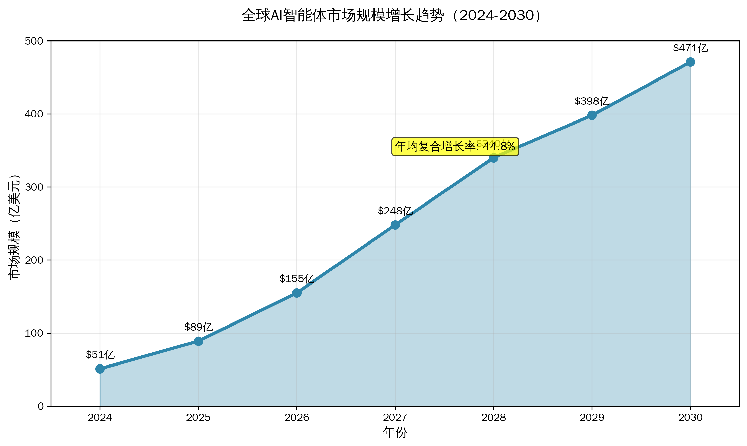根据Gartner最新预测,AI智能体市场规模将在2024-2030年间实现爆发式增长,从51亿美元攀升至471亿美元,年均复合增长率高达44.8%。与此同时,企业软件中整合自主型AI的比例将从2024年的不足1%跃升至2028年的33%。这些数据表明,传统的FAQ客服系统正面临前所未有的技术革命,而答疑智能体开发已成为企业数字化转型的关键突破口。