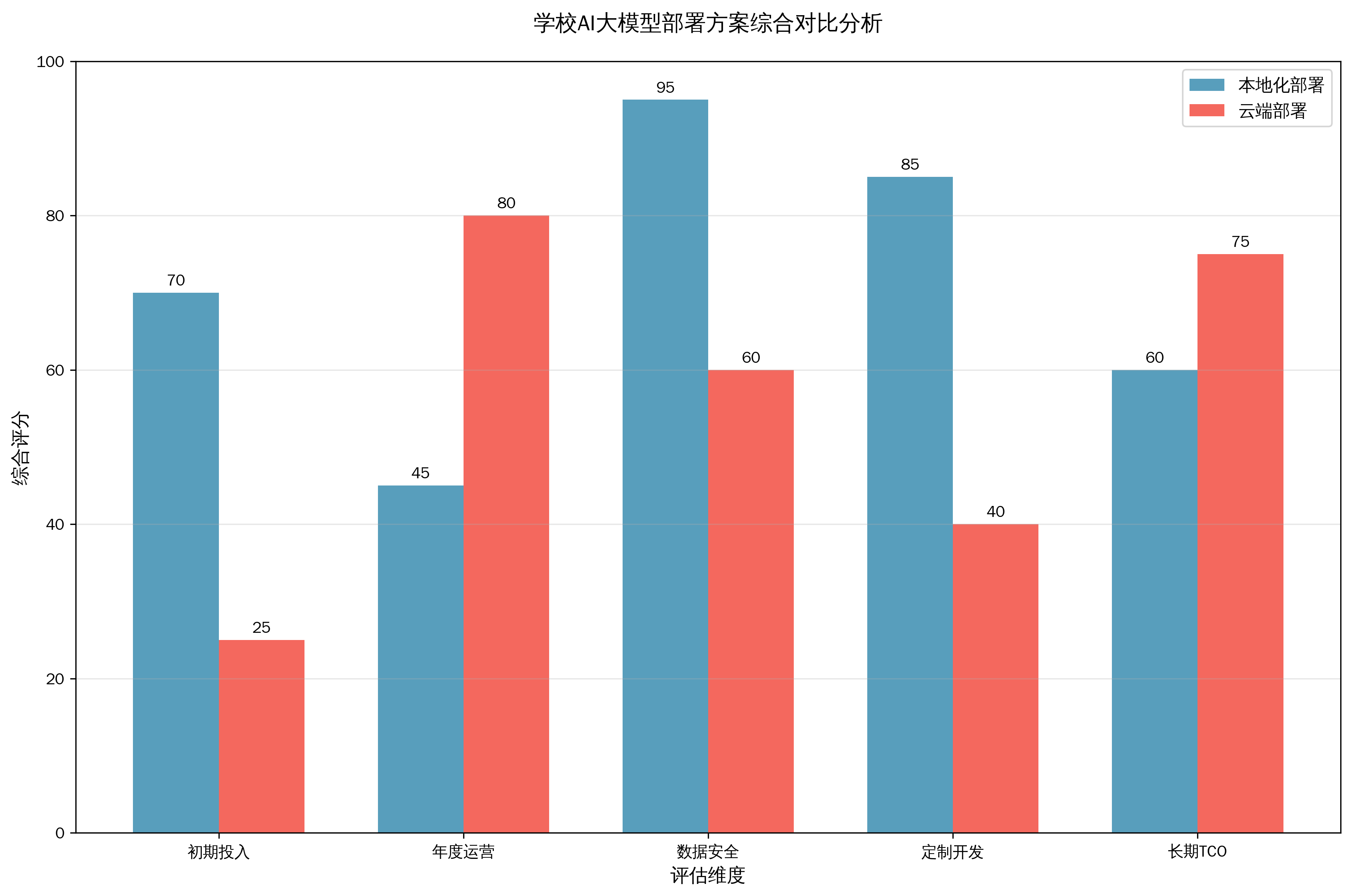 从对比分析可以看出,本地化部署在数据安全和定制开发方面具有压倒性优势,这正是学校等教育机构的核心关切点。虽然在初期投入和年度运营方面成本较高,但在数据主权和个性化需求满足方面的价值是云端部署无法比拟的。