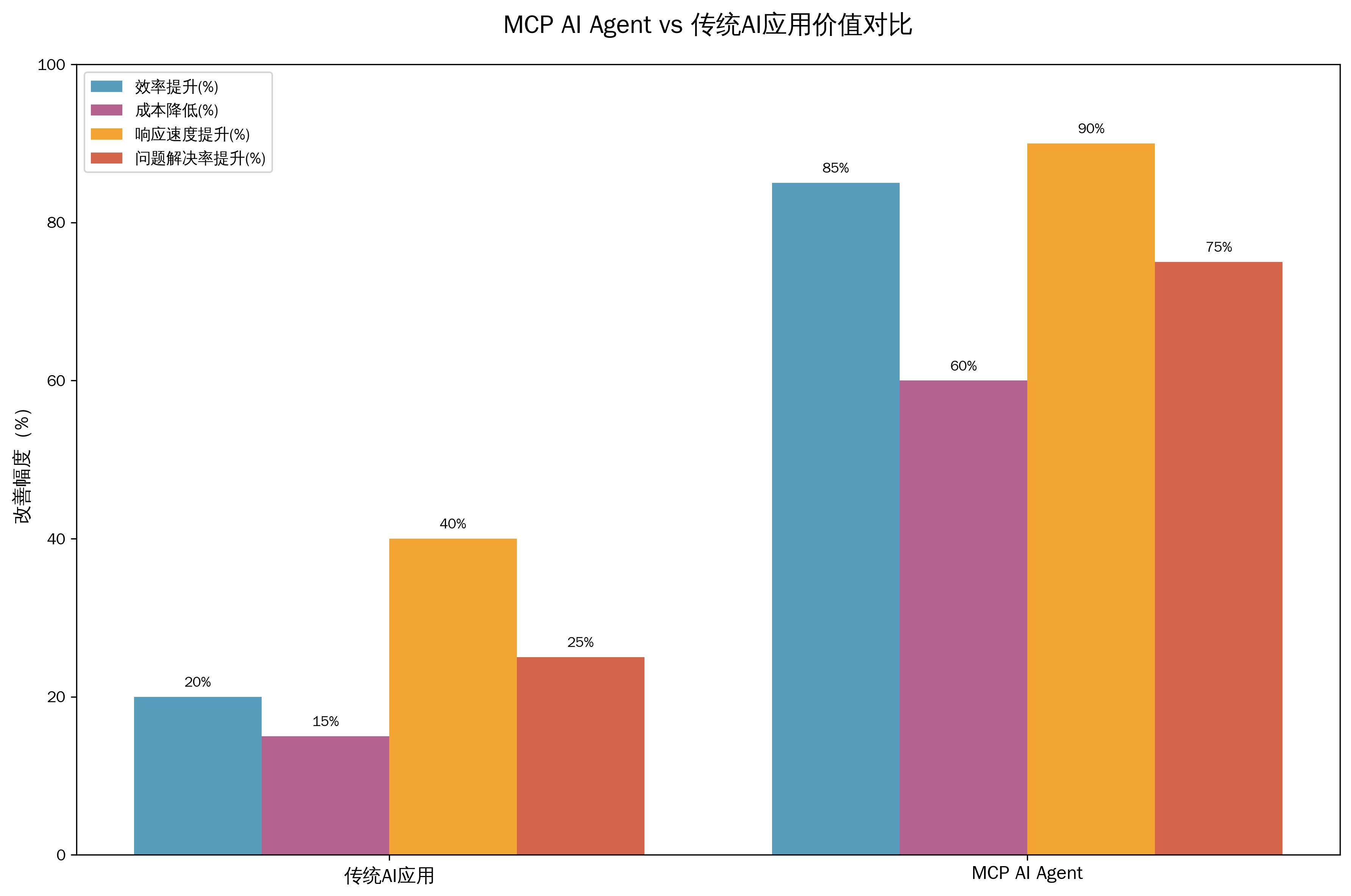 为了更直观地展现MCP AI Agent的价值优势,我们基于多个实际案例进行了量化分析。结果显示,相比传统AI应用,MCP AI Agent在多个关键指标上都实现了显著提升: